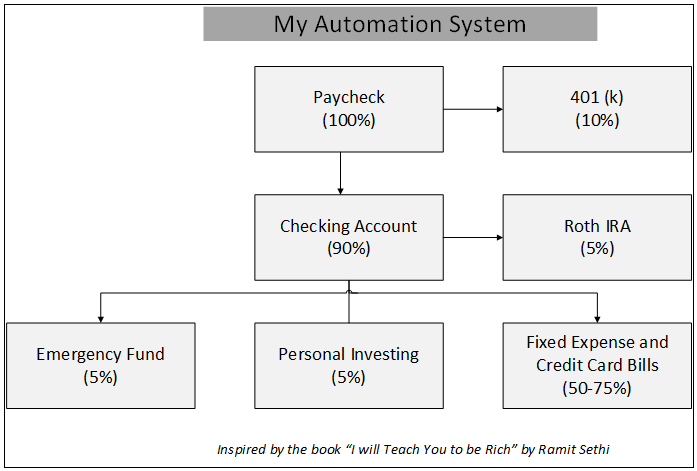 Below are the five steps I have implemented to automate my finances. These steps are inspired by both the books I mentioned above. I also have a flow chart at the end of this article that summarizes my whole automation process.